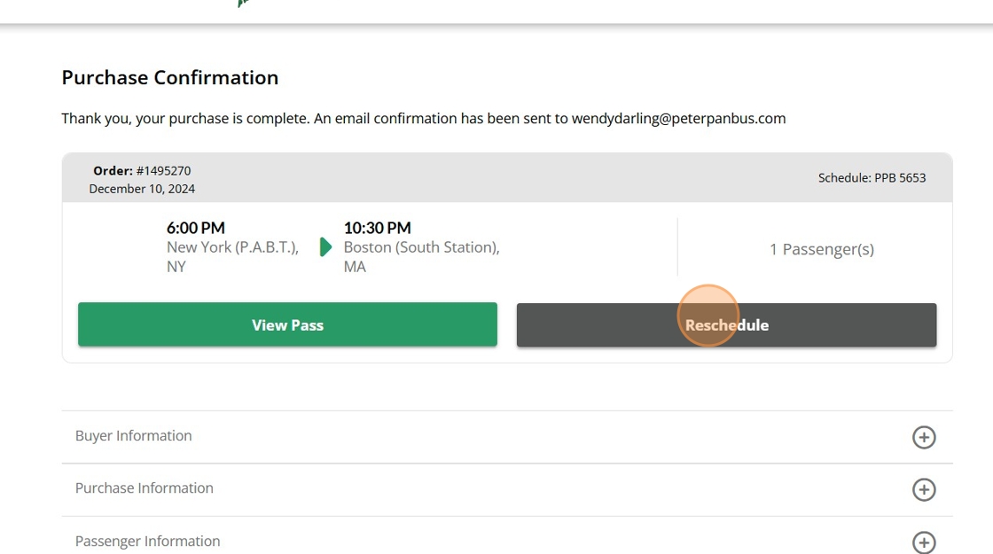 If you don't have an account, you'll need to create one to change your ticket. You can sign up at peterpanbus.com/perks