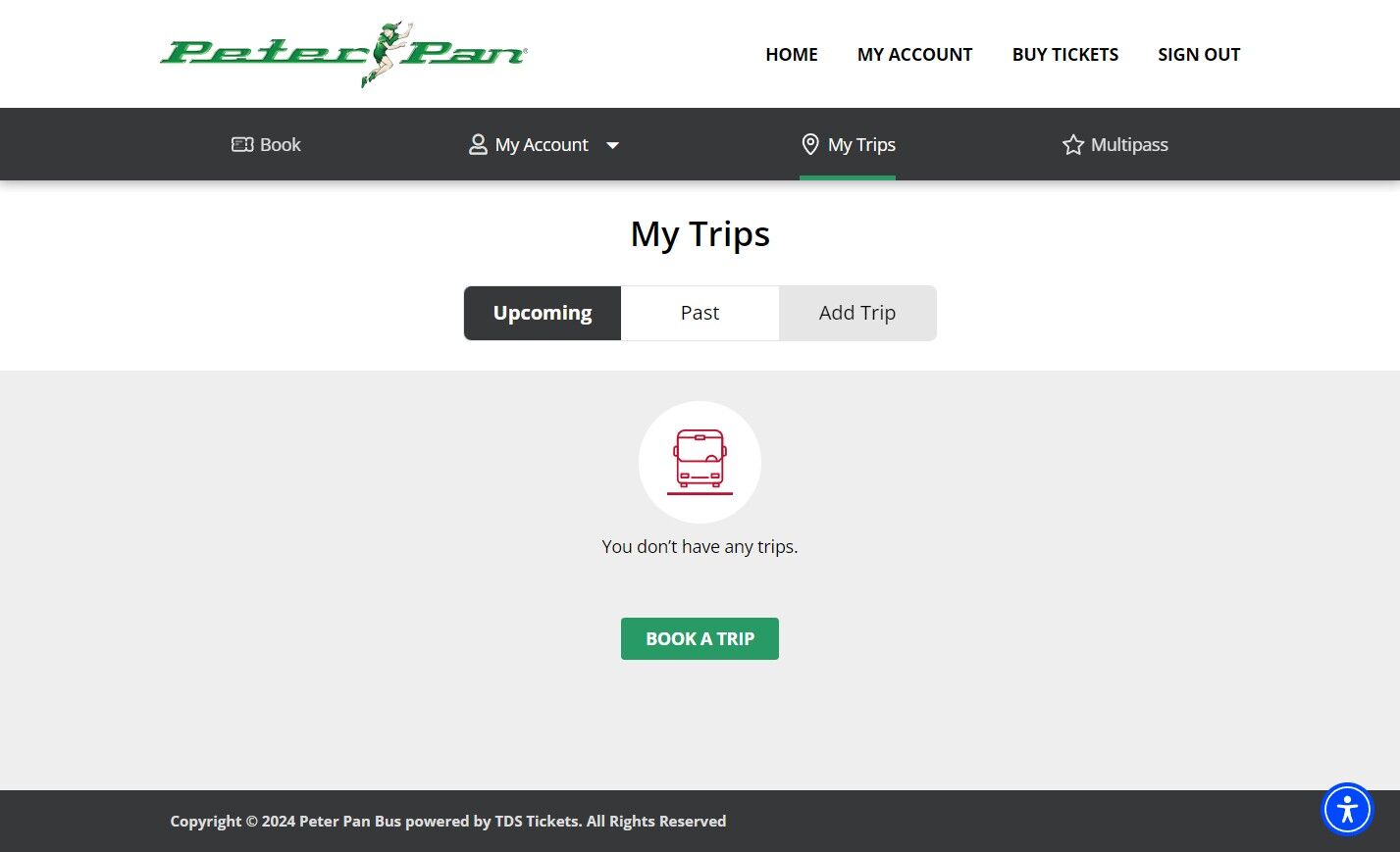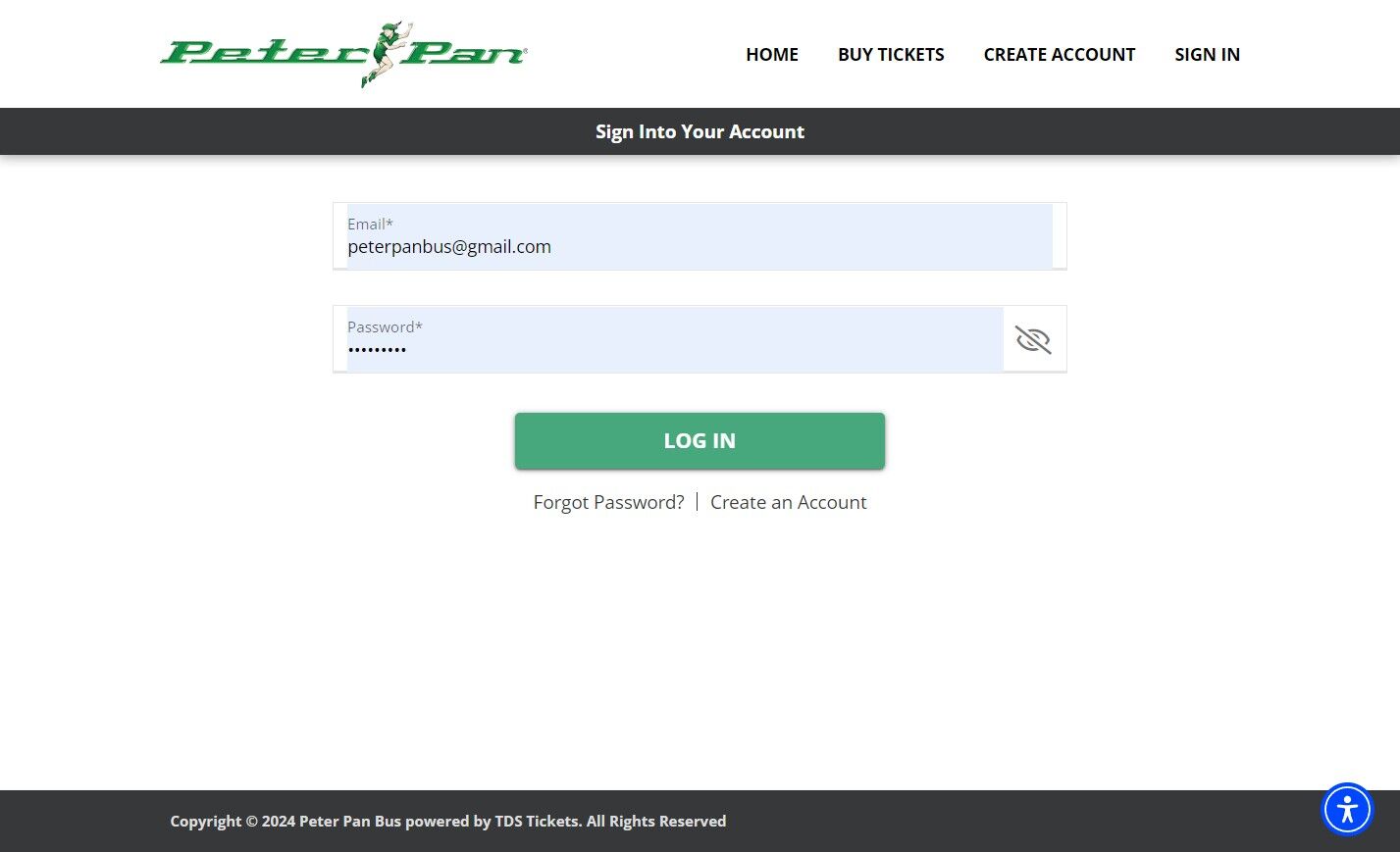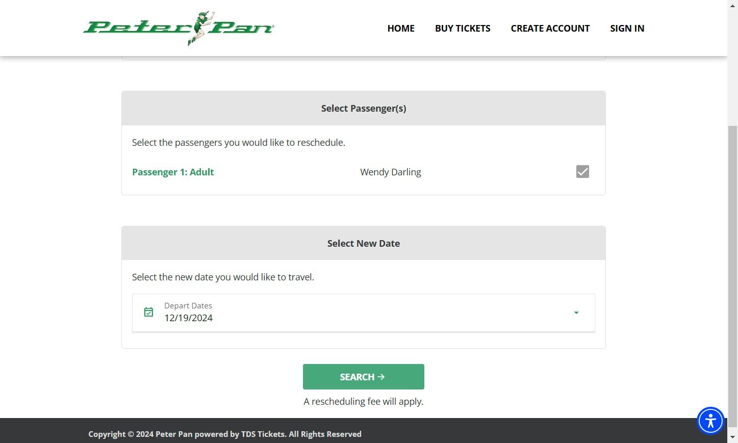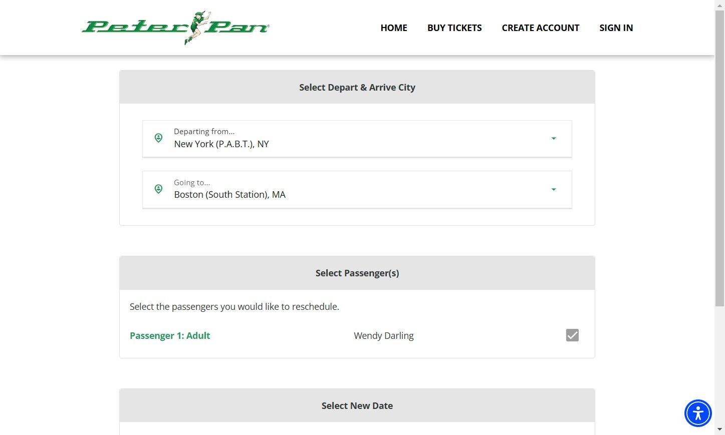 If you don't have an account, you'll need to create one to change your ticket. You can sign up at peterpanbus.com/perks