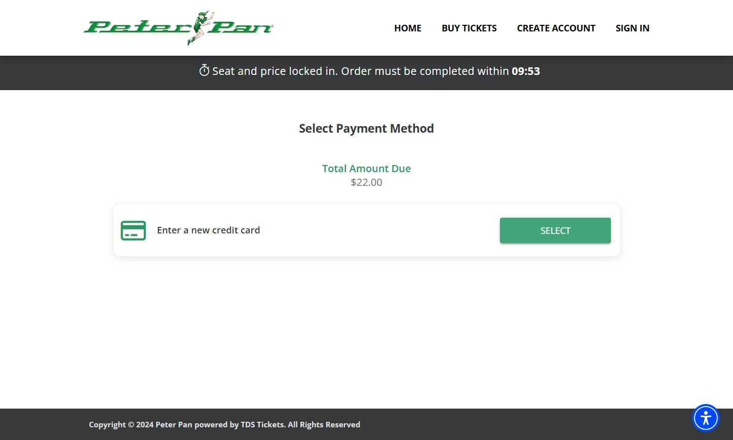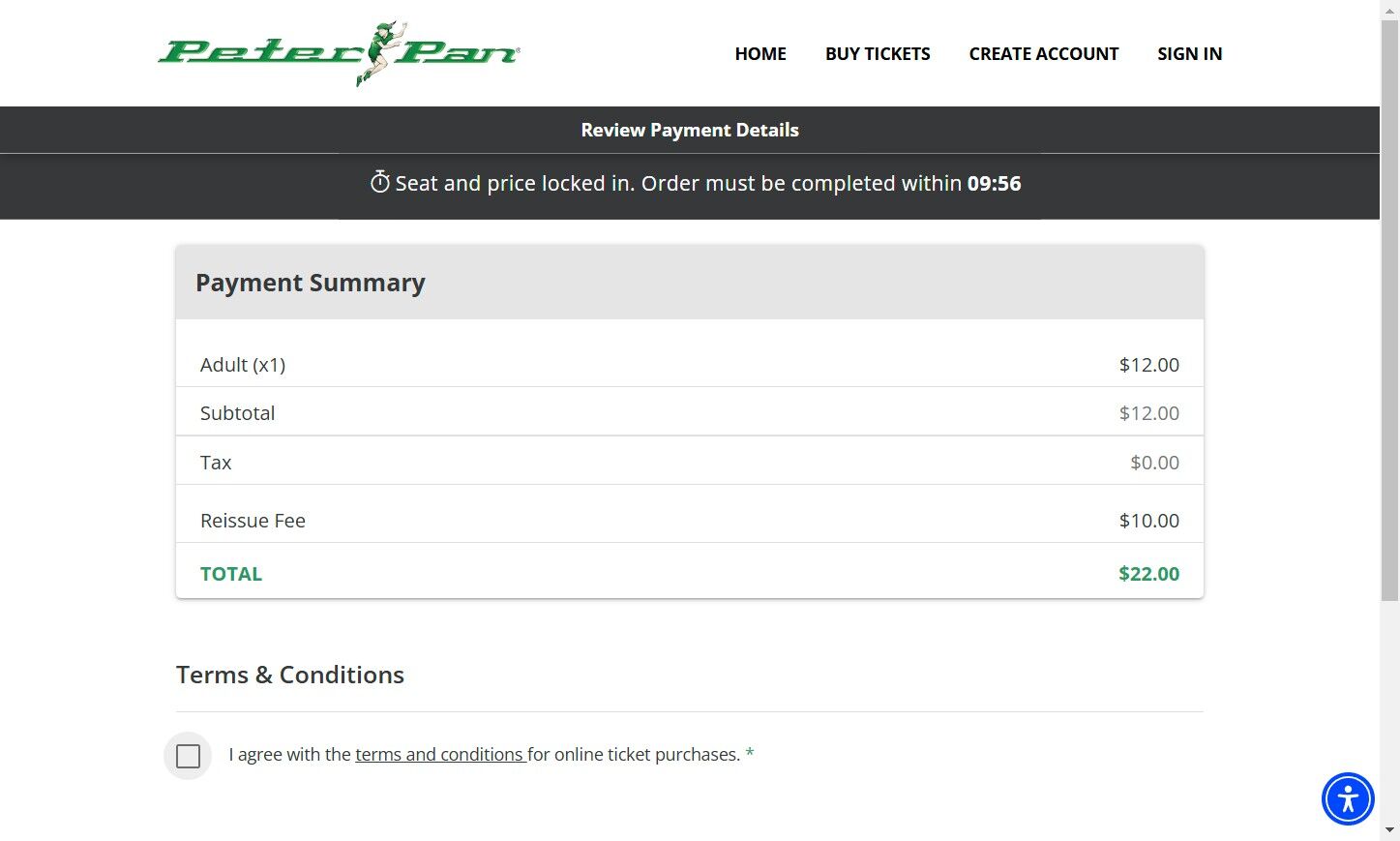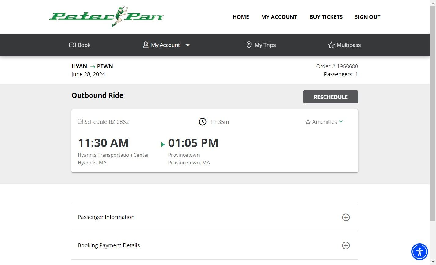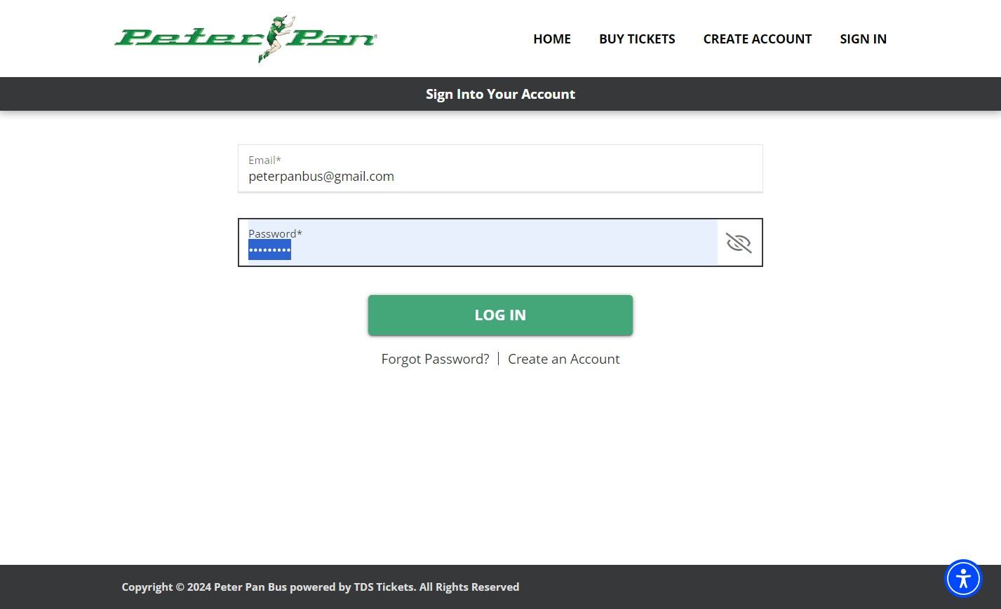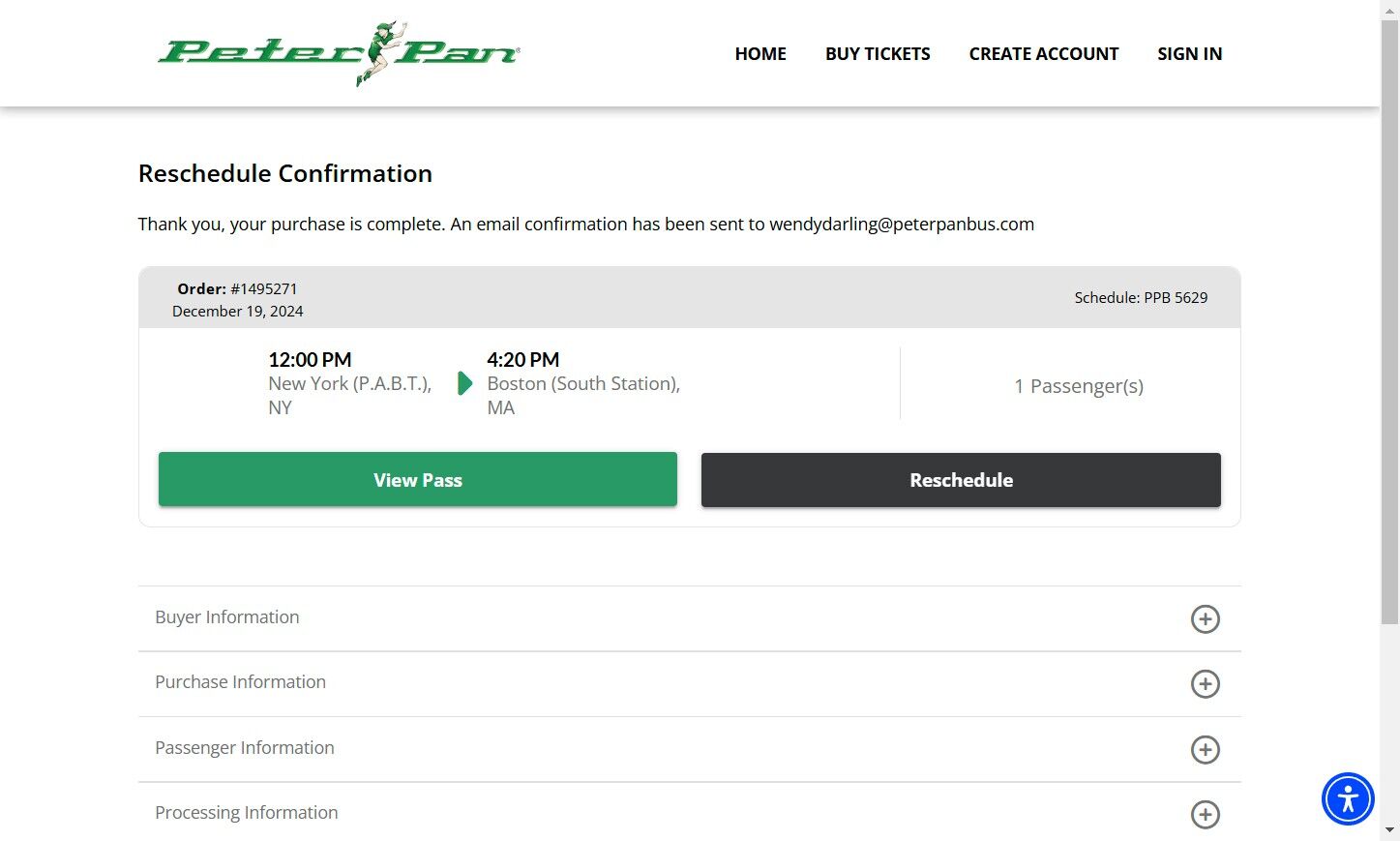 If you don't have an account, you'll need to create one to change your ticket. You can sign up at peterpanbus.com/perks