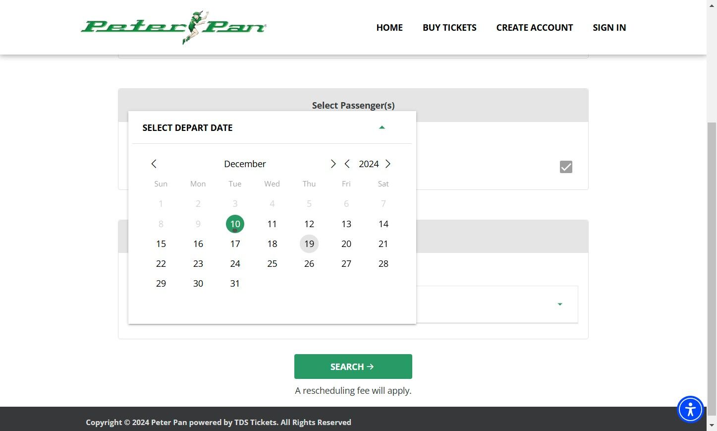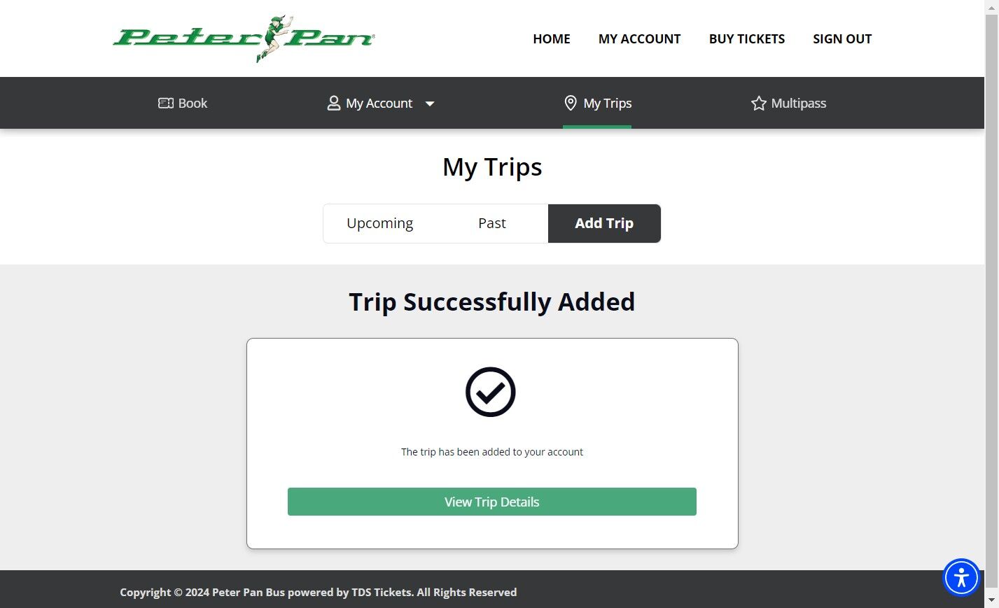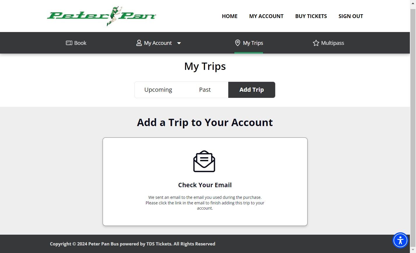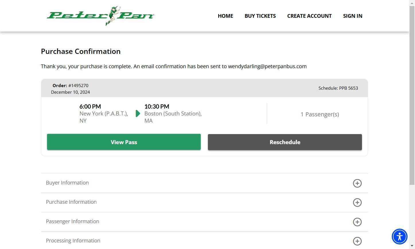 If you don't have an account, you'll need to create one to change your ticket. You can sign up at peterpanbus.com/perks